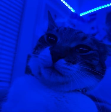 (sorry about the shit blue light i have it cause i heard cats like it that color :3) (ANOTHER THING I WILL KEEP UPDATING THIS WITTH MY CAT)